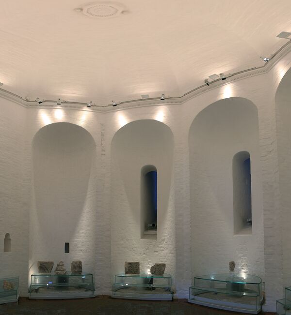Храм имел форму относительно правильного восьмиугольника с полуколонками на углах. «Диаметр по внешним стенам по оси север-юг равнялся 8,5 метрам. Очевидно, длина храма по оси восток-запад была несколько больше, но не превышала 9 метров. Длина промежутка стен между полуколонками колебалась от 310 до 360 сантиметров. Внутреннее пространство церкви без учёта помещения алтаря было невелико и представляло собой пространство примерно 5 на 5 метров. Толщина стен церкви варьировалась в зависимости от конкретного места и могла достигать в максимуме до 150 сантиметров. Что касается высоты постройки, то здесь нет каких-либо определённых данных»[8].