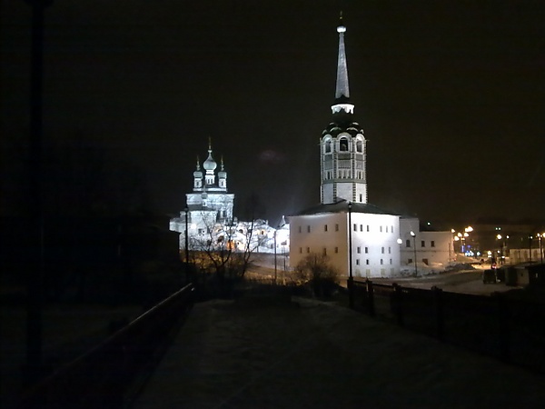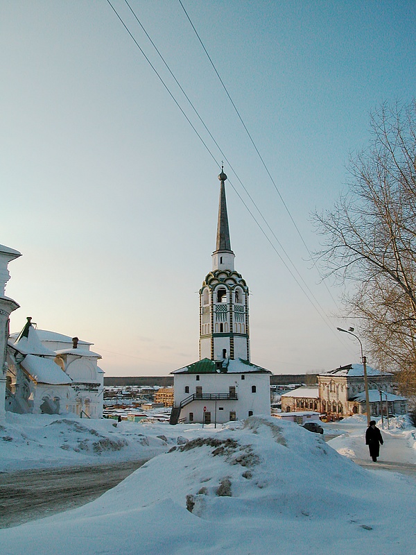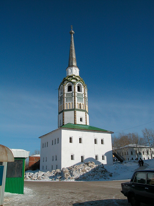 Отдельно стоящая башня, построенная в 1713 году в историческом центре города, использовалась как колокольня Спасо-Троицкого собора. Высота башни от основания до креста 60 метров. Возвышаясь над долиной реки Усолки, она служит важной доминантой, до сих пор определяя архитектурный облик города. Башня имеет значительный наклон от вертикали, заметный даже на глаз. Башня не имеет аналогов в русской архитектуре.