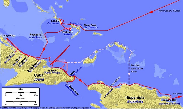 В исторической науке считается дискуссионным вопрос о том, какой именно остров, называемый на местном языке «Гуанахани», а самим Колумбом названный «Сан-Сальвадор», был открыт 12 октября 1492 года: остров Уотлинг или же остров Самана-Ки. Однако не вызывает сомнений, что это был один из Багамских островов, входящих в архипелаг Лукайя.