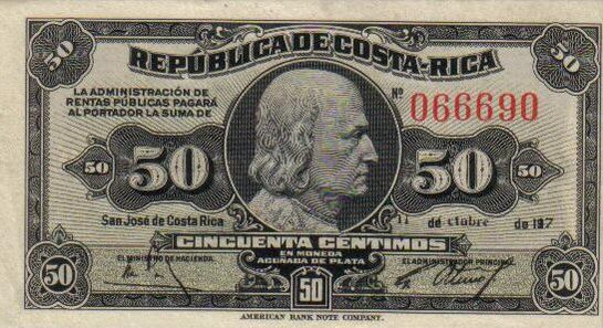 На валюте Коста-Рики — коста-риканском колоне — Христофор Колумб изображался крайне редко (на банкнотах 1/2 и 1 колон) и лишь в самом начале XX века.
