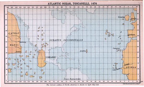 Полагают, что ещё в 1474 году астроном и географ Паоло Тосканелли сообщил Колумбу в письме, что до Индии можно добраться гораздо более коротким морским путём, если плыть на запад. По-видимому, уже тогда Колумб задумался о своём проекте морского путешествия в Индию. Возможно, на заниженную оценку Колумбом размеров Земли повлиял труд Imago Mundi (лат. Картина Мира, 1410) епископа Петра де-Аллиако[4][5]. Произведя собственные расчёты на основании карты Тосканелли, он решил, что удобнее всего плыть через Канарские острова, от которых до Японии, по его мнению, оставалось около пяти тысяч километров.