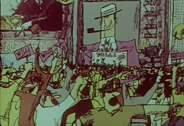 Колумб открывает Америку — современную. И попадает в самое пекло предвыборной кампании. Лидер партии «узкополых» Вилли решил использовать его в качестве приманки для публики. «Широкополые» под водительством своего лидера Аллена совершают нападение на ресторан, где происходит торжественный ужин «узкополых», и похищают Колумба. И вот торжественный парад в честь Аллена и его «друга» Колумба. «Узкополые» нападают на «широкополых». Из всеобщей свалки Колумб спасается бегством. Его преследуют. Мореплавателю удается спастись в психиатрической больнице. Там, наконец, он устанавливает свое знамя[1].