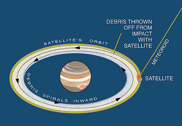 В 2002—2003 годах Галилео дважды прошёл сквозь «паутинные кольца». Во время прохода пылевые датчики зафиксировали частицы пыли с размерами 0.2-5 μm.[34][35] Помимо этого, сканеры Галилео зафиксировали наличие относительно небольших (< 1 км) тел вблизи от Амальтеи.[36] Возможно, это последствия столкновений неких тел с поверхностью спутника.