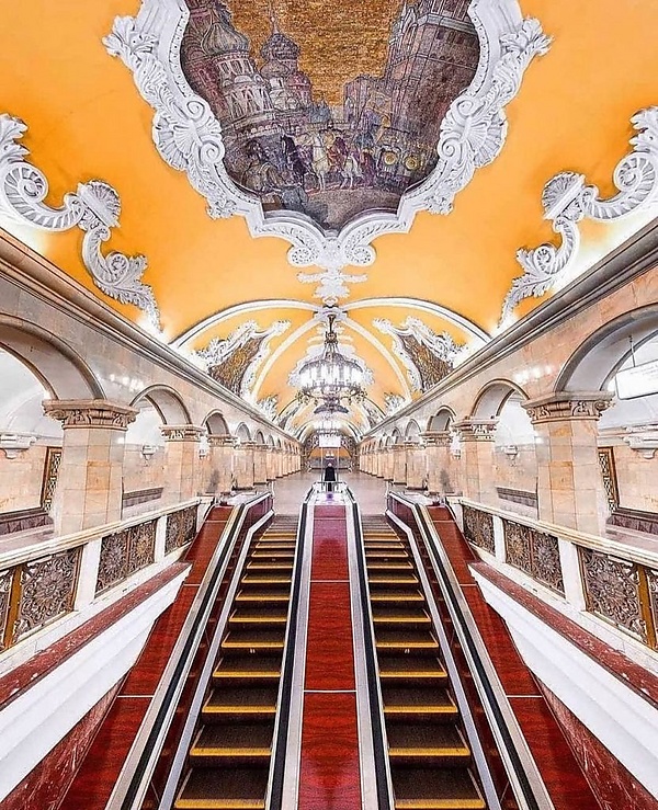 - «Комсомольская» — самая грандиозная станция — апофеоз сталинского ампира. Посвящена борьбе русского народа за независимость. На сводах изображены картины из истории воинской славы России (авторы: коллектив во главе с архитектором А. В. Щусевым).