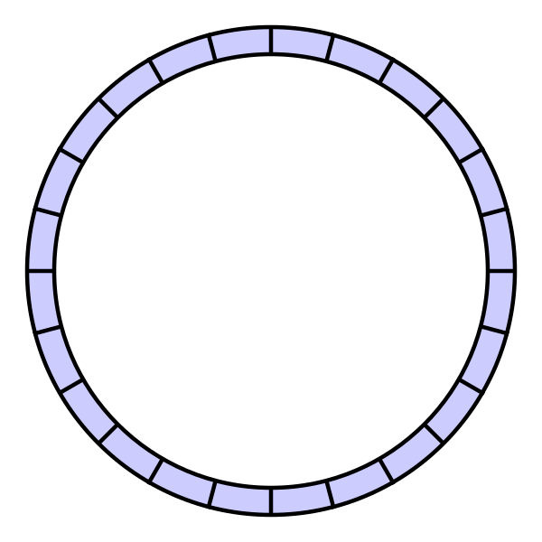 Кольцевой буфер создается пустым, с некоторой заранее определённой длиной. Например, это семиэлементный буфер: