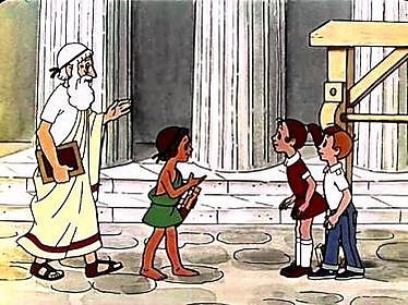 | роли озвучивали: | Мария Виноградова (Коля), Евгений Весник (греческий военачальник), Анатолий Папанов (римский центурион), Ольга Громова (Оля), Юрий Андреев (молодые греческие воины), Алексей Грибов (Архимед), Тамара Дмитриева (мальчик-лирник), Степан Бубнов (Марк Клавдий Марцелл, пожилой греческий воин) (в титрах не указан) |