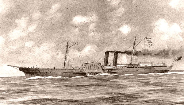 Начиная с 1820-х годов Британский Королевский флот начал строительство колёсных паровых фрегатов и паровых шлюпов. К 1850 году они устарели из — за развития винта, который был менее уязвим для пушечного огня. Однако колёсные военные корабли широко использовались русским флотом во время Крымской войны 1853—1856 годов, а также военно-морским флотом США во время мексиканской войны 1846—1848 годов и Гражданской войны в США 1861—1865 годов. С появлением броненосных линкоров в конце 1850-х годов последние оставшиеся колёсные фрегаты были списаны и проданы на службу торговому флоту к 1870-м годам. Среди них был и Miami, который в 1867 году стал одним из первых пароходов Бостона.[21]