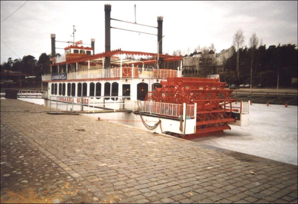 Первый колёсным пароходом с кормовым колесом был построенный господином Roentgeres в Роттердаме и использовался между Антверпеном и Гентом в 1827 году.[9]