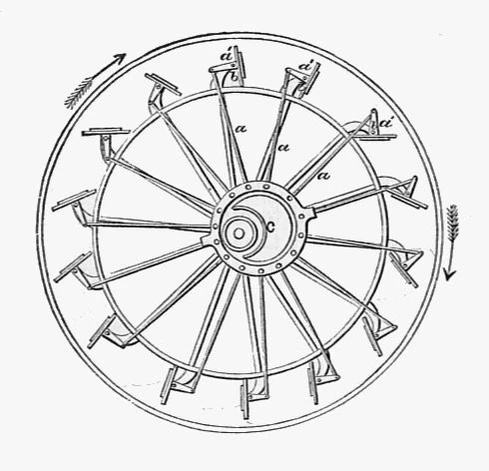 В простом гребном колесе, где лопасти закреплены по периферии, мощность теряется из-за вспенивания воды, когда лопасти входят и выходят из поверхности воды. В идеале лопасти должны оставаться вертикальными под водой. Этот идеал может быть приближен с помощью рычагов и рычажных систем, соединённых с неподвижным эксцентриком. Эксцентрик закреплен немного впереди центра главного колеса. Он соединен с каждой лопастью стержнем и рычагом. Геометрия спроектирована таким образом, что лопасти остаются почти вертикальными в течение короткого времени нахождения в воде.[3]
