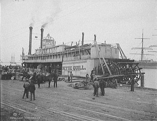 После Гражданской войны в США, когда расширяющиеся железные дороги принимали много пассажиров, перевозить стали в основном насыпные грузы. Самым большим и одним из последних колёсных пароходов на Миссисипи был Sprague — колёсный пароход с кормовым колесом. Построенный в 1901 году, он перевозил уголь и нефть до 1948 года.[11][12][13][14][15]
