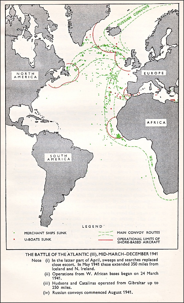 Взгляды высших адмиралов на жизненно важный вопрос — поддержание связи морем с союзниками и колониями — менялись в зависимости от наличных сил и прошлых успехов. Кроме того, влияло и давление политического руководства страны, например личное пристрастие Черчилля к наступлению.[6]