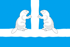 Описание герба: «В лазоревом поле пониженный волнистый пояс, сопровождаемый вверху волнистым же столбом и стоящими на нем по обе стороны столба сообращенными бобрами; все фигуры серебряные»[2].