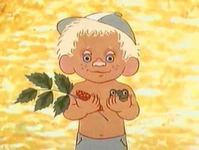 Мальчик шёл по тропинке через луг, нашёл шишку и лягушку, засунул их в карманы. На лугу он встретил телёнка, привязанного к колышку, и попытался с ним поиграть. Потом он вышел на поляну с одуванчиками и увидел, что солнце опускается в речку. Тут его нашла воспитательница и от радости заплакала. А Комаров сказал: «Нина Пална! Ну чего Вы? Возьмите всё, только не плачьте!». И протянул ей шишку и лягушку. Лягушка тотчас спрыгнула с его руки и была такова. И Комаров столь же радушно протянул воспитательнице оставшуюся шишку.