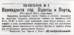- городской комендант[1], в России был в каждом городе и в тех селениях, где были расположены две или более отдельные воинские части или команды. Для замещения комендантских должностей в С.-Петербурге, Москве, Царском Селе, Гатчине, Петергофе, Варшаве, Тифлисе, Николаеве и некоторых других городах назначались особые лица. В прочих городах обязанности коменданта возлагались на уездных воинских начальников, а где их не было — на одного из офицеров местного гарнизона. Городские коменданты подчинялись главному начальнику военного округа и начальнику гарнизона.