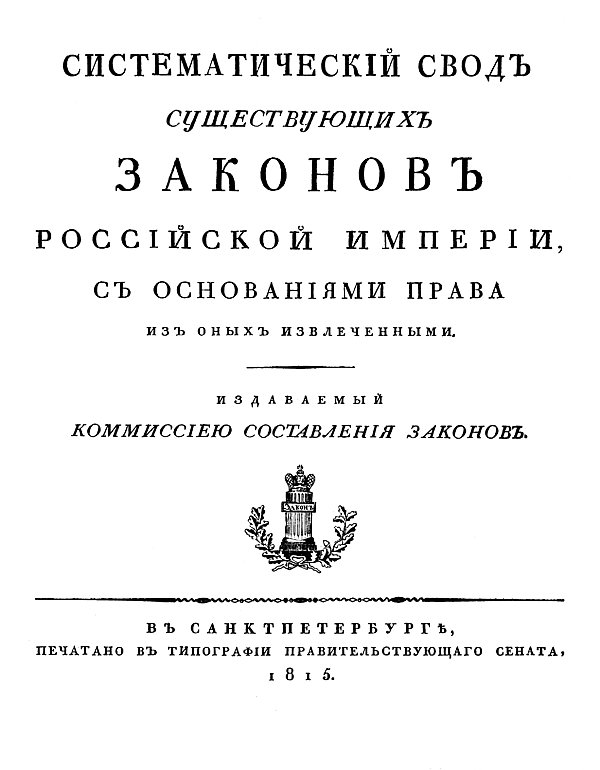 - Труды Комиссии составления законов. — 2-е изд. — СПб., 1822. — Т. I.
