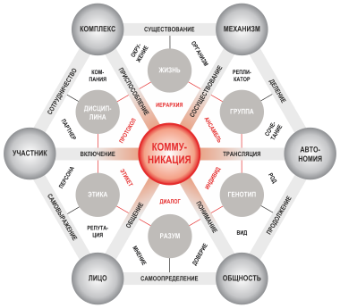 Понятие «коммуникация» — первооснова для любых процессов жизнедеятельности людей, механизм общения, обмена сообщениями, мыслями, сведениями, идеями; специфическая операция социальных систем по перераспределению знания и незнания между их участниками; средство конструирования и поддержания отношений между людьми[11].