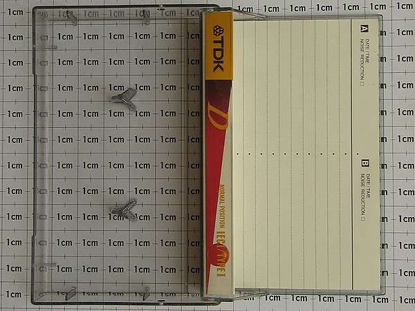 Наибольший диаметр рулона ленты — 52,0 мм; расстояние между осями сердечников — 42,5 мм. Длина ленты для стандартных 90-минутных кассет составляет 135 метров при толщине 12 мкм. Сердечник имеет отверстие с шестью зубцами, захватываемых валами лентопротяжного механизма, и втулку, крепящую конец ленты к катушке. Между катушками и половинками корпуса прокладываются пластины-щёчки из полимерной плёнки, иногда с нанесением антифрикционного материала или на бумажной основе (уменьшающие трение), но в некоторых случаях при протяжке ленты они издавали сильный писк. Лента, сматываемая с подающего сердечника, проходит через пару направляющих роликов в углах корпуса, задающих положение ленты — строго по оси корпуса. Кассеты могут собираться на пяти винтах-саморезах (разборные) или быть неразборными (некоторые кассеты фирмы TDK имеют четыре самореза по краям, а в центре — направляющий штифт), центральный (5-й шуруп) имеет углубления для установки пломбы.