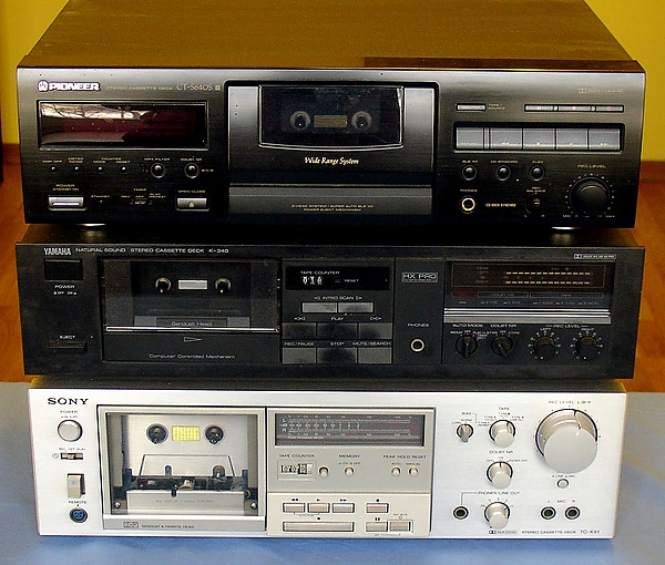 - В 1973 на рынок серьёзной кассетной техники вышла японская фирма Nakamichi, флагманские модели которой задали стандарт отрасли в целом и к 1980 году достигли теоретического потолка по измеримым параметрам и субъективному качеству звука. Разрыв в качестве звучания между механической грамзаписью и компакт-кассетой сократился до уровня, удовлетворяющего абсолютное большинство слушателей. Хотя цена такой техники была недоступна массовому потребителю, она задала направление для отрасли в целом, и уже к 1985—1988 годам производители массовых марок (Sony, Yamaha, Akai и т. п.) подошли вплотную к лидеру, во много раз понизив цены на качественные деки.