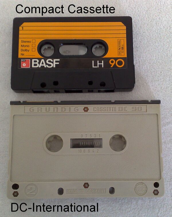 В 1965 г. фирма Grundig выпустила на рынок очень похожую кассету DC International и магнитофоны под неё. Кассета имела размеры 120×73×12 мм, скорость движения ленты — 5,08 см/с[44][45]. Конкуренции с компакт-кассетой этот формат не выдержал и через несколько лет сошёл со сцены.