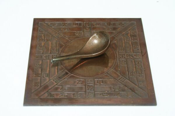 Компас был изобретён в Китае при династии Сун и использовался для указания направления движения по пустыням (подробнее см. четыре великих изобретения). Магнитное приспособление для определения сторон света в дневное время суток впервые упоминается в книге Цзэн Гунляна «Собрание важнейшего из военных канонов», датируемой 1044 годом. В ней и работе учёного Шэнь Ко представлены два вида компаса: «указывающая юг рыба» (тонкая железная пластина в виде рыбы, которая особым образом нагревалась и погружалась в воду) и «указывающая юг игла» (намагниченная игла посредством трения о магнит)[3]. В трактате Шэнь Ко упоминается также более сложный компас (механический) — Колесница, указывающая на юг, где не использовались магнетические свойства[4]. Ещё два варианта изготовления компасов известно из трактата «Обширные записки о лесе дел» Чэнь Юаньцзина (издана в 1325 году). Первый из этих приборов представлял собой деревянную рыбу, в нижнюю часть которой был вмонтирован магнит. Рыба изготавливалась таким образом, чтобы она могла находиться на поверхностности воды в горизонтальном положении, но при этом немного была в неё погружена. Со стороны головы магнит соединялся проволокой, с таким расчётом, что его выгнутая часть приподнималась над водой. Когда деревянную рыбу помещали в воду, её голова направлялась в сторону юга[3]. Юаньцзин показал устройство другого компаса, по преданию также изобретённого даосскими бессмертными («магами»). В деревянную черепаху был помещён магнит, соединявшийся с иглой, словно хвост у черепахи. На её «брюшке» находилось отверстие, через которое она закреплялась на вертикальной булавке, изготовленной из бамбука. Это было сделано с таким расчётом, чтобы конструкция могла беспрепятственно перемещаться. При необходимости установления стороны света магнитный «хвост» черепахи поворачивался на юг. Такое приспособление рассматривается как прообраз магнитных компасов современной системы[5].