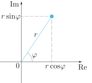 Если вещественную и мнимую части комплексного числа выразить через модуль и аргумент (то есть , ), то всякое комплексное число , кроме нуля, можно записать в тригонометрической форме[16]: