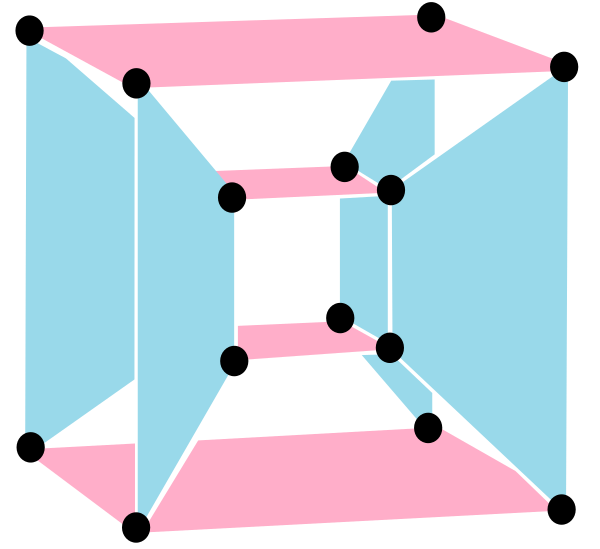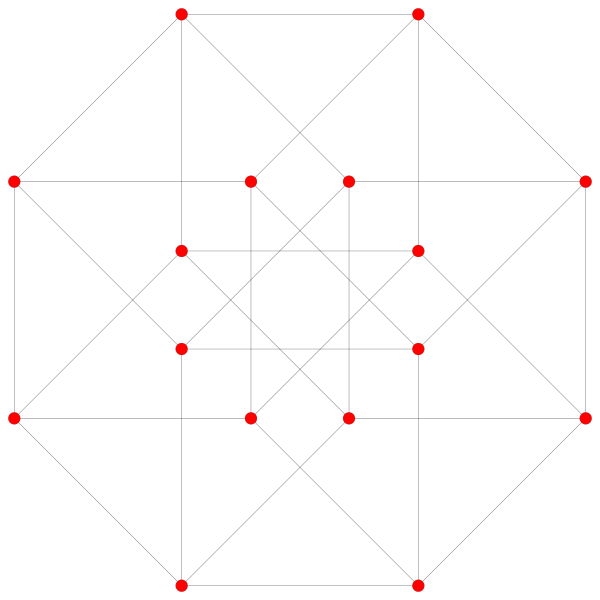 Последняя диаграмма показывает структуру, спроецированную в трёхмерное пространство — два куба вершин, фактически, имеют один и тот же размер, но рассматриваются в перспективе с различного расстояния в четырёхмерном пространстве.
