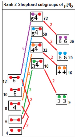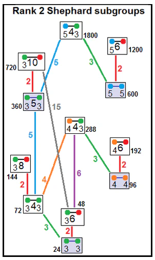 Коксетер представляет эти группы следующими символами. Некоторые группу имеют одинаковый порядок, но различную структуру, определяя то же расположение вершин в комплексных многогранниках, но различные рёбра и элементы более высокой размерности, как в диаграммах