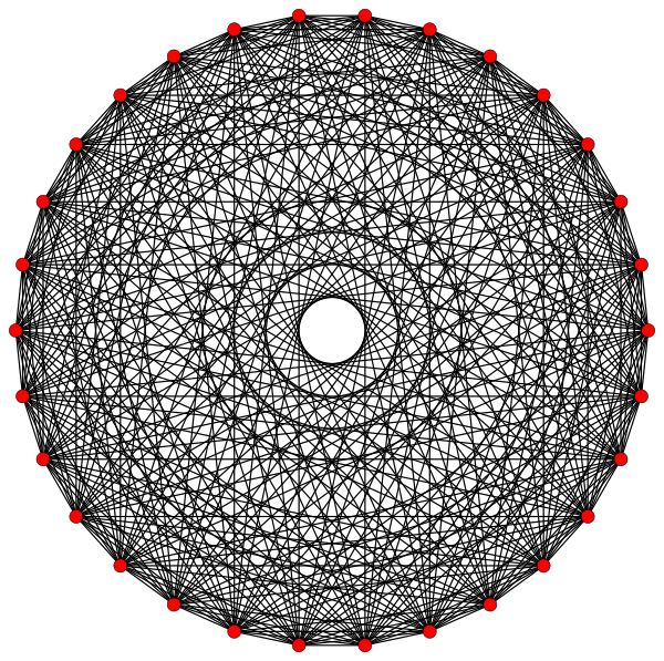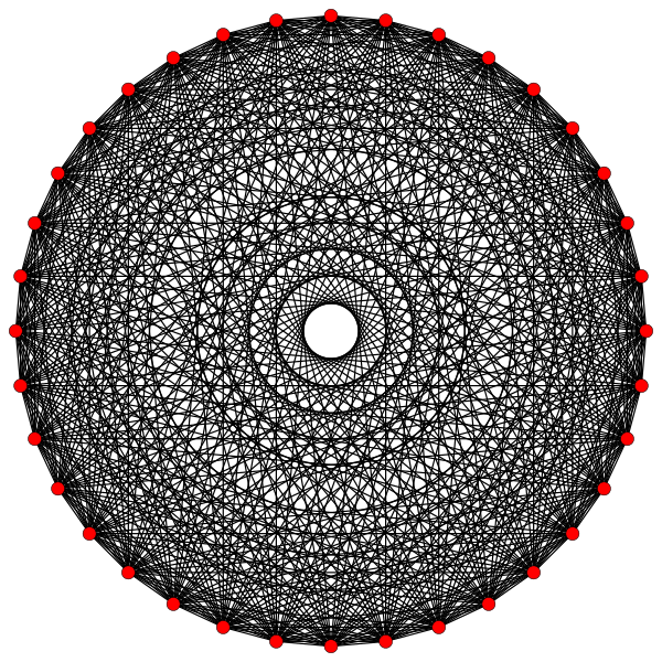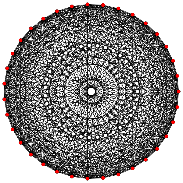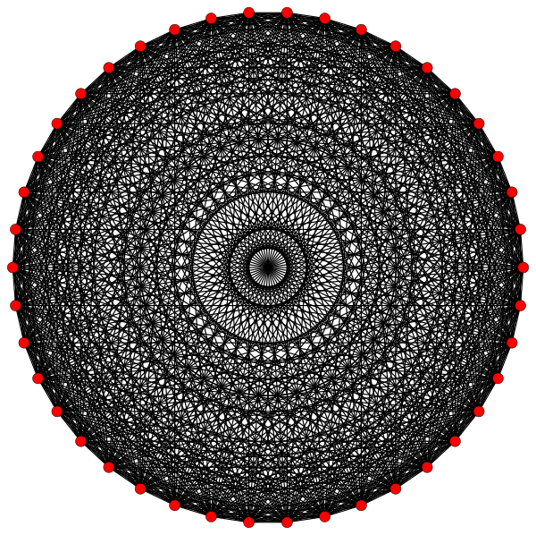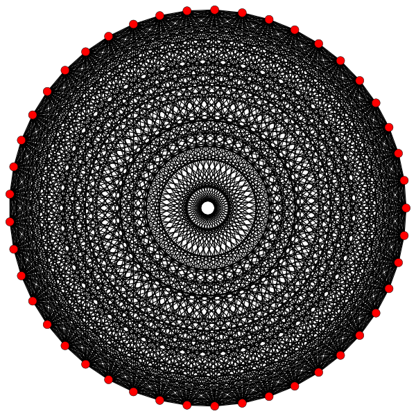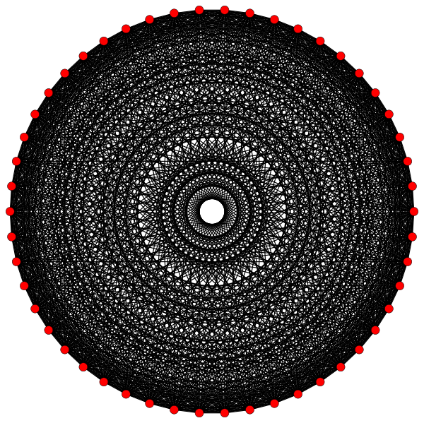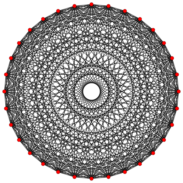В правильном комплексном многограннике вершины, инцидентные ребру, располагаются симметрично относительно барицентра, который часто используется как начало координатной системы ребра (в вещественном случае барицентром является просто середина ребра). Симметрия возникает из комплексных отражений относительно барицентра. Это отражение оставляет модуль любой вершины неизменным, но меняет её аргумент на постоянную величину, передвигая её в координаты следующей по порядку вершины. Таким образом, мы можем считать (после подходящего выбора шкалы), что вершины ребра удовлетворяют уравнению , где p — число инцидентных вершин. Таким образом, на диаграмме Аргана ребра, точки вершины лежат в вершинах правильного многоугольника с центром в начале координат.