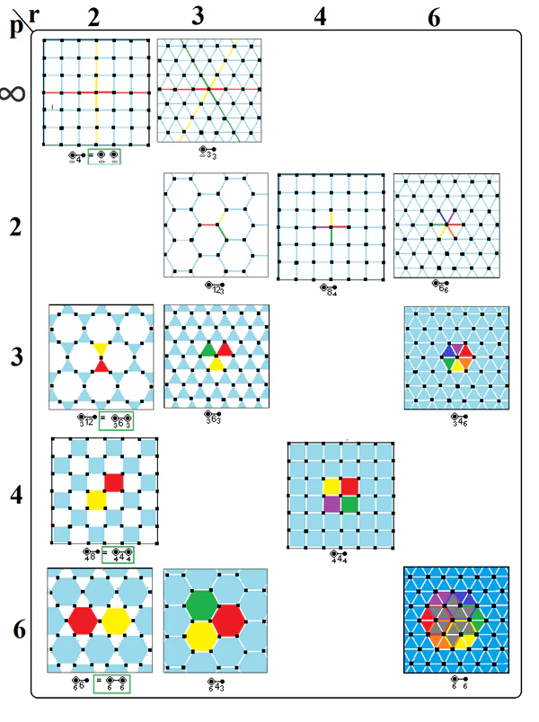 Порядок группы, g, используется для вычисления полного числа вершин и рёбер. Многогранник имеет g/r вершин и g/p рёбер. Если p=r, число вершин и рёбер равно. Это условие необходимо, если q нечётно.