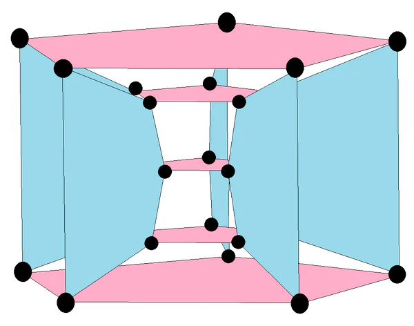 64 вершины, 48 4-рёбер и 12 граней. |