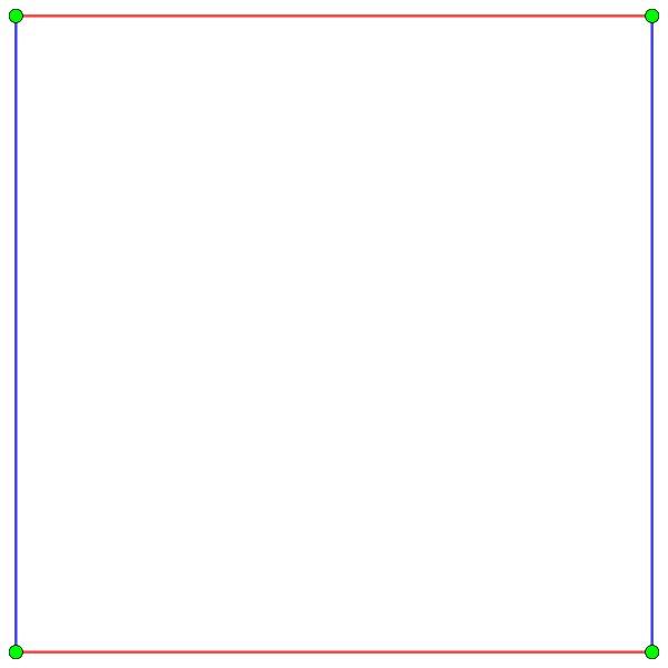 Правильный вещественный 1-мерный многогранник представляется пустым символом Шлефли {} или диаграммой Коксетера — Дынкина