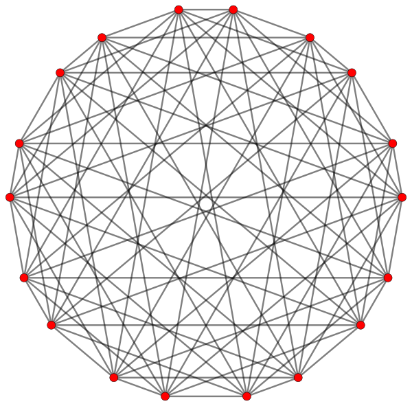 Комплексный многогранник существует в комплексном пространстве эквивалентной размерности. Например, вершины комплексного многоугольника — это точки на комплексной плоскости , а рёбра — комплексные прямые , существующие как (аффинные) подпространства плоскости, пересекающиеся в вершинах. Таким образом, ребро может быть задано одним комплексным числом.