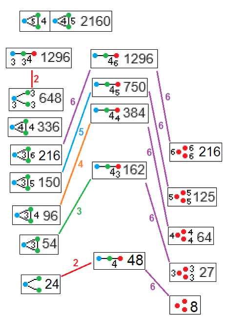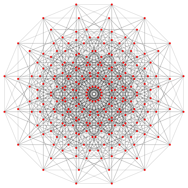 108 вершин, 648 2-рёбер и 18+216 граней. |