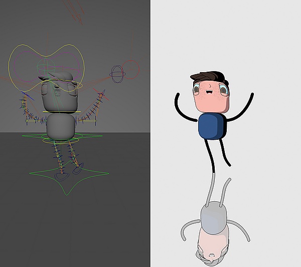 В 2D-анимации объекты формируются отдельными изображениями и слоями, которые можно компоновать с виртуальным скелетом или без него.