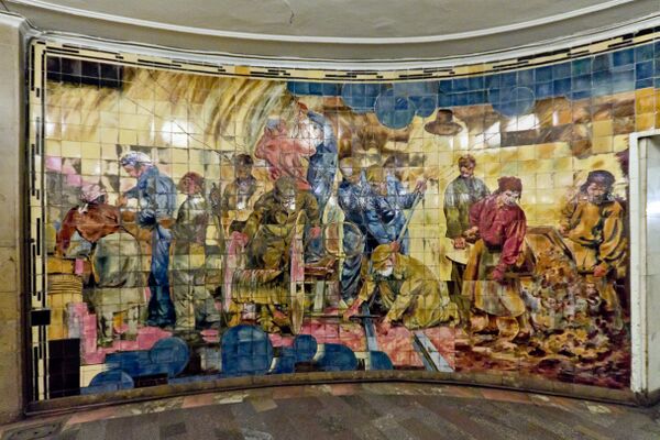 Стены балконных галерей покрыты мрамором «газган», колонны на балконах — прохоро-баландинским мрамором. Для оформления станции впервые в метрополитене были применены панно из майоликовой плитки, отражающие героику труда комсомольцев-метростроевцев («Метростроевцы», художник Е. Е. Лансере)[1][3].