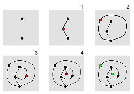 Джон Конвей придумал игру «Жизнь» — известный клеточный автомат. Он определён на поле, замощённом квадратами. Каждая клетка поля в каждый момент (дискретного) времени считается живой либо мёртвой, причём на следующем временно́м шаге состояние клетки определяется следующими правилами, зависящими от состояния её восьми клеток-соседей на текущем шаге[48]:
