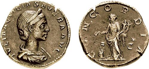 На древних монетах много изображений Конкордии, в виде украшенной венком женской головы или сидячей женской фигуры, обыкновенно с чашей для возлияний в одной руке и рогом изобилия в другой.