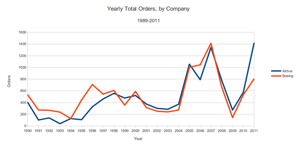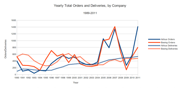 Boeing имеет более развитую линейку продуктов, однако Airbus имеет больший потенциал для улучшения. Взрывной рост объёма авиаперевозок, особенно в Азии, привёл к буму продаж авиалайнеров.
