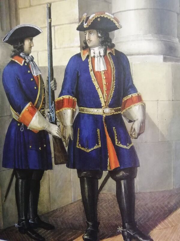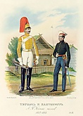 - мундир (повседневный) — тёмно-зелёный, обшивка — оранжевый, обшивка, эполеты, металлический прибор — золотой.