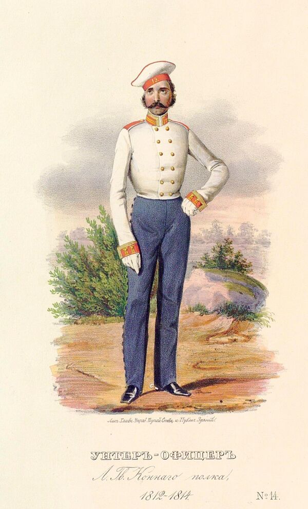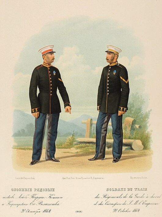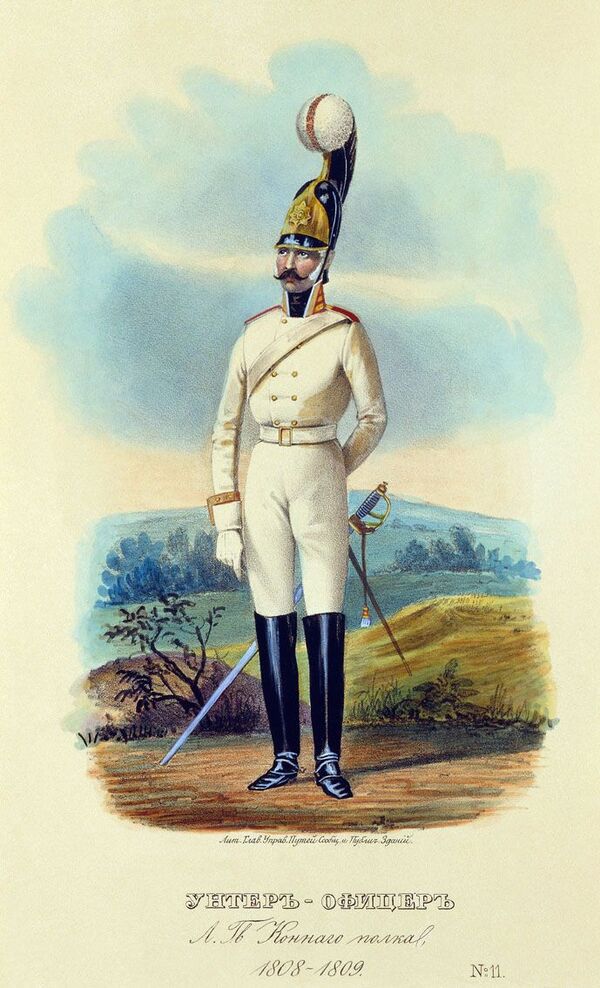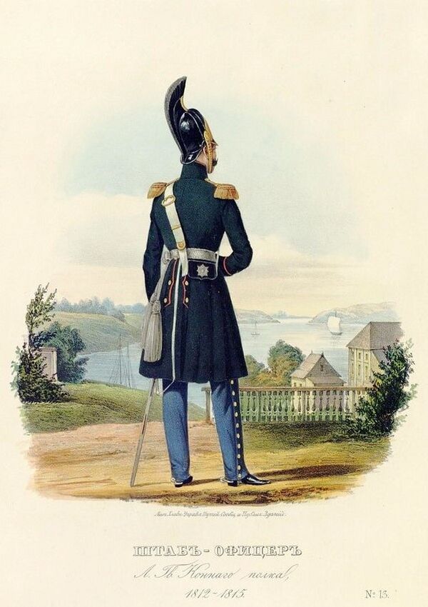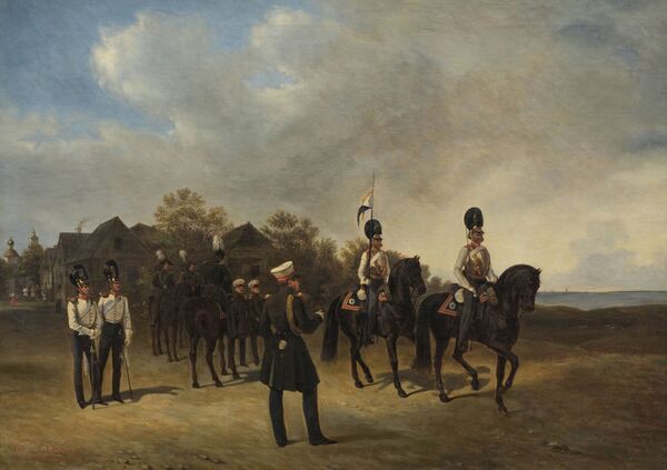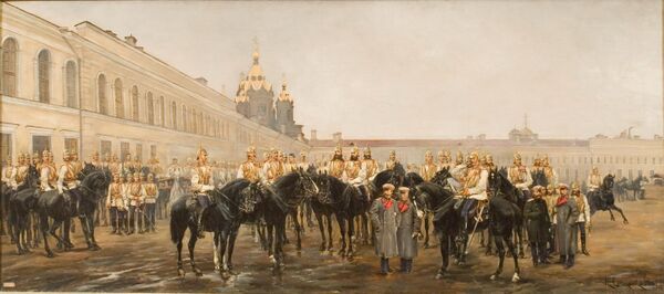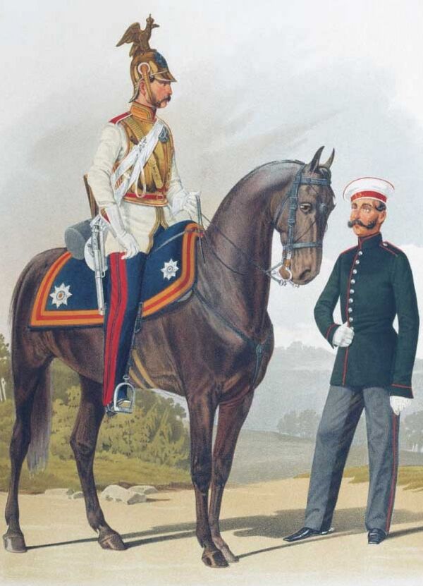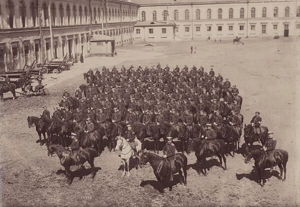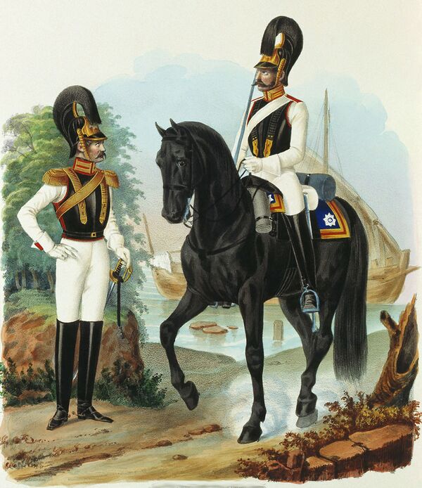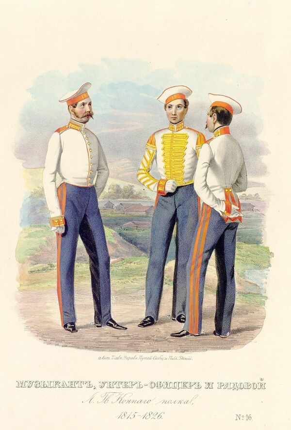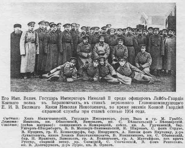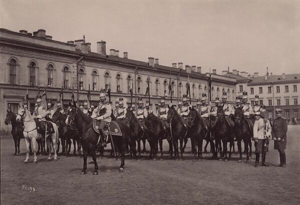 В николаевскую эпоху XIX века Конная Гвардия играла заметную роль в столичной жизни. В полку служили и представители русских княжеских, и старинных дворянских родов (князья Голицыны, кн. Урусовы, Нарышкины, Анненковы, Опочинины, Свечины, Бибиковы, Головины, Дурново, Бутурлины, Чичерины, кн. Васильчиковы), и титулованных фамилий, выдвинувшихся в XVIII веке (графы Строгановы, гр. Орловы, гр. Шуваловы, гр. Гудовичи), и новой николаевской чиновной элиты — бароны Штакельберги, гр. Канкрины или Адлерберги. Мундир конногвардейца служил своеобразной вывеской принадлежности к великосветскому обществу[22].