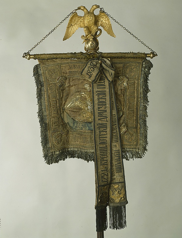 - Георгиевский штандарт с Андреевской юбилейной лентой и надписями: «За взятие при Аустерлице неприятельского знамени и за отличие при поражении и изгнании неприятеля из пределов России 1812 года» и «1730-1830», и со скобами, пожалованными 25.06.1838 г., и новым древком образца 6.04.1875 г.
