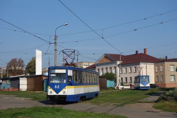 Трамвайная сеть состоит из трёх линий и имеет общую длину 28 км, являясь одной из самых маленьких трамвайных сетей на Украине. Основная часть сети является однопутной (с разъездами). Часть улиц, по которым проходит трамвай, не имеет даже твёрдого покрытия. Линии обслуживаются трамваями типа КТМ-5, построенными с 1975 по 1989 на Усть-Катавском вагоностроительном заводе имени С. М. Кирова, а также одним вагоном К-1 и переданными из Риги Tatra T3A.