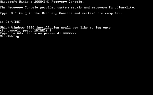 Доступ к файловой системе в консоли восстановления по умолчанию сильно ограничен. Администратор, использующий консоль восстановления, имеет доступ только для чтения ко всем томам, за исключением загрузочного тома, но даже на томе загрузочного тома имеет доступ только доступ к корневому каталогу и системному каталогу Windows (например, \ WINNT). Это можно настроить, изменив Политики безопасности, чтобы включить файловой системе полный доступ для чтения / записи, включая копирование файлов со съемных носителей (например, с дискет).
