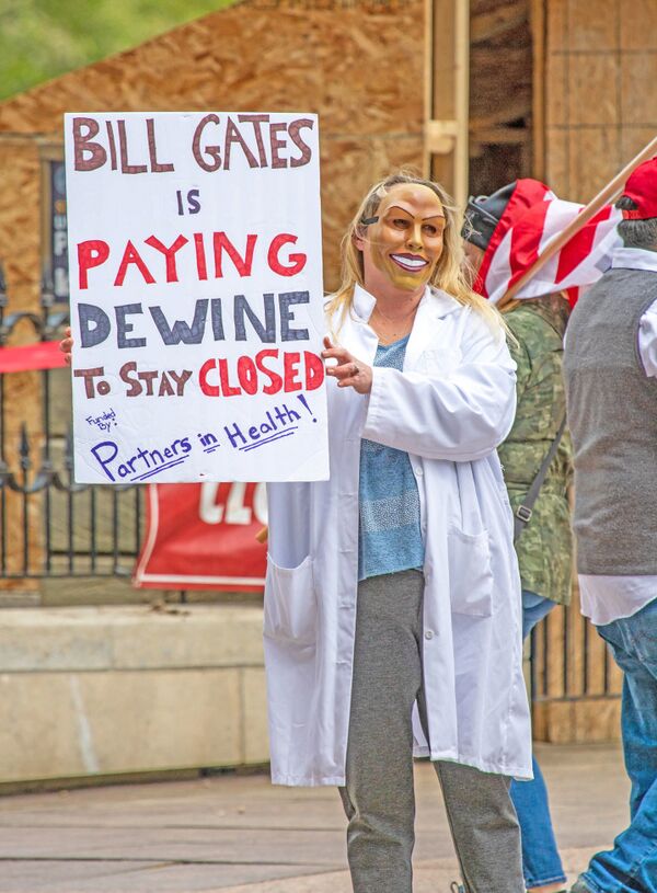 По сообщению Би-би-си, уже в январе 2020 года YouTube-блогер Джордан Сатер, сторонник ультраправой теории заговора QAnon и антивакцинного движения, указывал на высказывания Гейтса об эпидемиях и патент, полученный институтом Пирбрайта в 2019 году, как доказательства того, что они и организовали пандемию COVID-19 c целью сокращения численности населения[127][128]. Позже идеи о связи Гейтса с пандемией повторяли более известные люди, такие как Алекс Джонс или телеведущая Лора Ингрэм[124]. В России подобные заявления делали кинорежиссёр Никита Михалков[129], авторы телепередачи «Человек и закон» на Первом канале[130], схиигумен Сергий (Романов)[131][132][133][134]. По данным аналитической компании Zignal Labs, к середине апреля 2020 года в Facebook накопилось порядка 16 тысяч публикаций о предполагаемой связи Гейтса и пандемии с общим количеством просмотров и «лайков» больше 900 тысяч; десять самых популярных видеороликов на эту тему на YouTube имели в сумме больше 5 миллионов просмотров[135]. Билл Гейтс в роли злодея, связанного с пандемией или использующего её для реализации каких-то зловещих планов, упоминался протестующими на массовых выступлениях против карантинных мер по всему миру — в США[136], Германии[137] и Австралии[125]. По данным опроса, проведённого Yahoo News и YouGov, веру в конспирологическую теорию о намерении Гейтса использовать вакцинацию против COVID-19 для «чипирования» жителей США разделяло 44 % опрошенных из числа поддерживающих Республиканскую партию, но всего 19 % из числа поддерживающих Демократическую партию[138]. Сам Гейтс в интервью Би-би-си говорил, что его «немного беспокоит» и «несколько удивляет» существование этих теорий. Миллиардер выражал опасения, что люди будут бояться вакцинации. Он подтверждал, что считает важной добровольную регистрацию тех, кто сделал прививки, но подчёркивал, что речь не идёт о каких-то чипах — в бедных странах такая информация вносится в бумажные документы, а в Индии проходит тестовая программа по сохранению данных в мобильные телефоны[139].