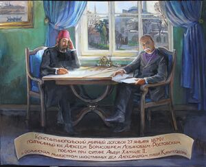 и Е. В. Император Оттоманов, с другой, Ал. Каратеодори-пашу, своего министра иностранных дел, и Али-пашу, своего министра, председательствующего в Государственном Совете…