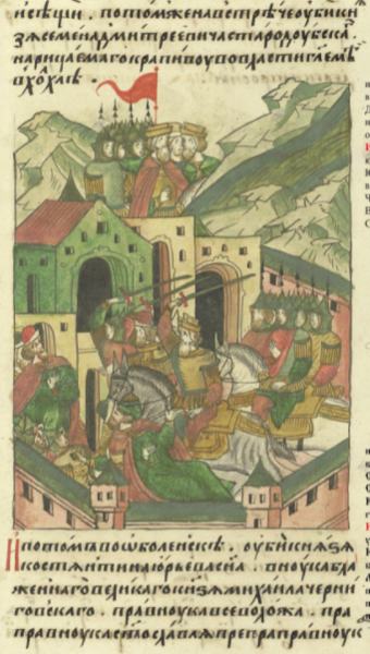 При этом в родословии князей Оболенских в сборнике, составленном Дионисием Звенигородским, было указано, что «Юрьи Тарусский и Оболенский, а у Костянтина Иван Торусский, а у Ивана Костянтин же Оболенский, его ж убил Олгирд в Оболенсце, егда к Москве приходил безвестно, в лето 6876»[3]. Однако уже в следующей редакции, близкой к «Государеву родословцу», между Юрием Торусским и Константином Оболенским, убитом в 1368 году, было убрано 2 поколения. Так, в родословии князей Щербатовых было сказано: «у князя Юрьи Торуского 3 сынъ князь Костянтинъ Оболенской, котораго убилъ Олгердъ». В летописном своде 1408 года сказано, что литовский князь Ольгерд в 1368 году «оуби князя Костянтина Юрьевича Оболеньскаго»[4]. Также в «Любецком синодике» согласно Р. В. Зотову упоминаются Юрий Тарусский и Константин Оболенский, но отсутствуют двое князей между ними[5].