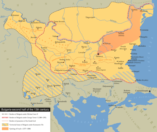В 1261 году под предлогом мести за ослепление никейского императора Феодора II Ласкариса Константин I Тих напал на Константинополь, но потерпел поражение, потеряв почти всю армию. Тогда он в 1265 году совместно с монгольскими войсками беклярбека Ногая предпринял повторный поход против Византии.