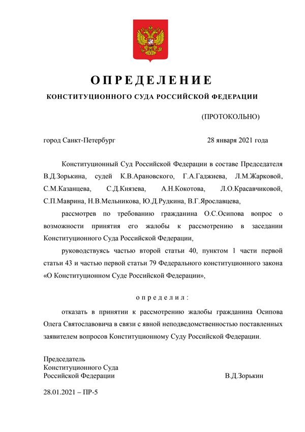 Решение Конституционного суда Российской Федерации окончательно и не подлежит обжалованию[22].