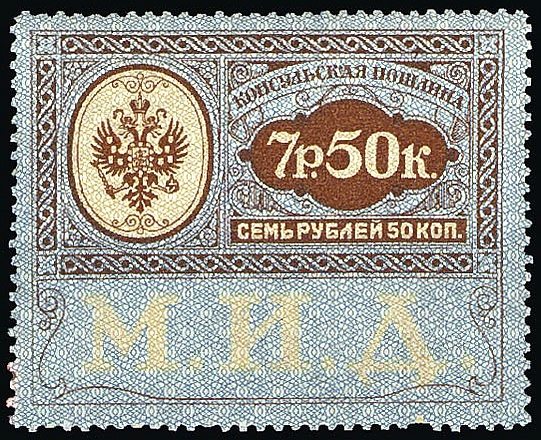 Для печатания казначейских знаков правительства А. Керенского (керенок) в 1917 году использовались, с небольшими доработками, клише консульских марок 10-рублевого достоинства.[1]