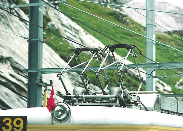 - Эластичная подвеска. При этом, проходя точку подвеса, токоприёмник приподнимает подвес.